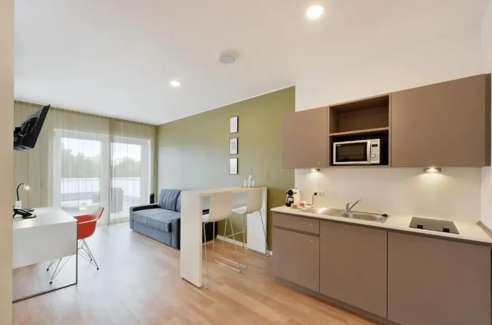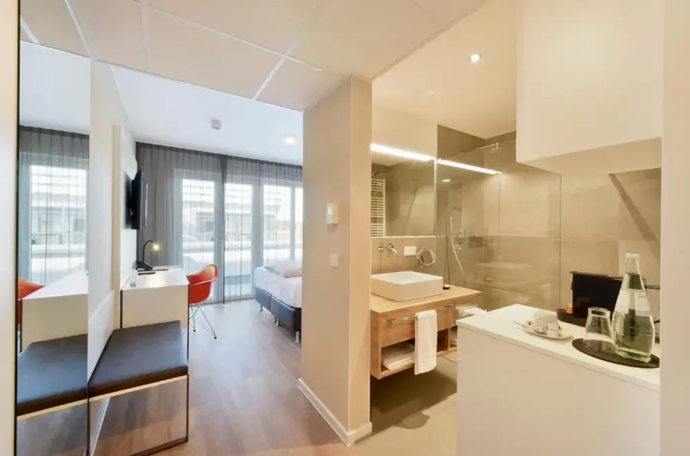Das K-Apart Hotel & Boardinghouse in Hürth bietet komfortable Unterkünfte mit moderner Ausstattung. Die Zimmer verfügen über einen Flachbildfernseher mit Satellitenkanälen sowie ein eigenes Badezimmer mit kostenfreiem Badematerial und Haartrockner. Gäste können im Restaurant eine Mahlzeit genießen und profitieren von freiem WLAN sowie einer Bar. Ein Fitnesscenter und eine Terrasse laden zum Entspannen ein. Zudem steht ein kostenloser Privatparkplatz zur Verfügung. Die Unterkunft eignet sich ideal für Geschäftsreisende dank der guten Verkehrsanbindung und zentraler Lage im Stadtteil Hürth. Nahegelegen finden Besucher den Stadtgarten Köln (7 km), Rosenzweigpark (4,3 km) und andere grüne Bereiche. Das Hotel punktet durch seine Sauberkeit, Freundlichkeit des Personals und die Vielfalt an Annehmlichkeiten wie Familienzimmer und barrierefreie Einrichtungen.